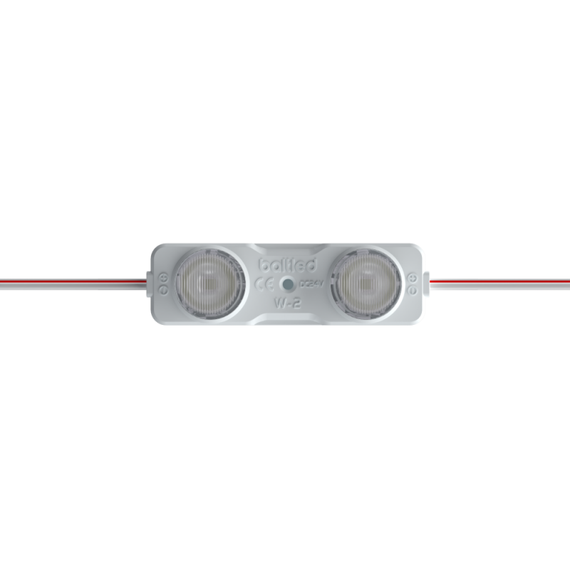 DUO W2 är en effektiv 24V-modul för dubbelsidiga ljuslådor med ett djup på 140–250 mm. Den är särskilt framtagen för mediumdjupa applikationer där du vill ha jämnt och kraftfullt ljus på båda sidor. Tack vare sin optimerade ellipsformade lins (15×45°) sprider den ljuset jämnt över material som akryl eller textil, även i skyltar upp till två meters höjd.