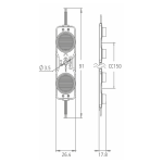Modulerna monteras med dubbelhäftande tejp eller skruv genom fästhål. CC-avståndet är 150 mm. Linserna är optimerade för dubbelsidigt ljus (15×45° spridningsvinkel).
