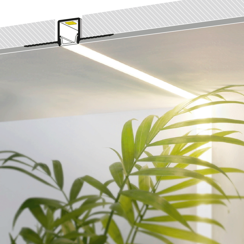 Hidden 12.12 är en måttanpassad LED-profil som spacklas in i tak eller vägg. Den saknar synlig kant och ligger i nivå med tak eller vägg. Profilen har 11,7 mm infällnadsdjup och är anpassad för 13 mm gipsskivor.